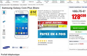 Smartphone galaxy core plus qui revient à 34 euros ( 128 – 30 euros remboursement différé – 64 en bons d’achats)