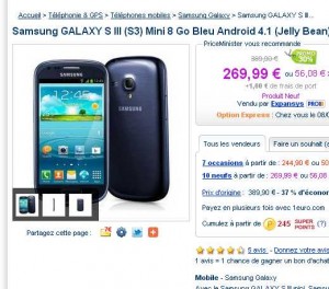 Smartphone Galaxy S3 Mini à moins de 260 euros le 6 février