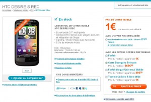 Smartphone HTC DESIRE S à 169.90 euros en reconditionné en formule prepayée chez bouygues…termine