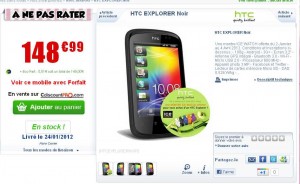 Smartphone HTC Explorer à moins de 150 euros avec une montre ice watch en prime