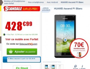 Smartphone Huawei Ascend P1 qui revient à moins de 360 euros