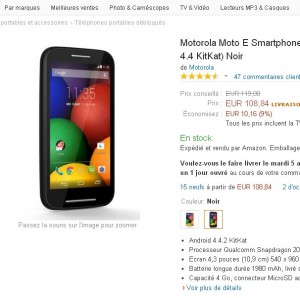Le motorola moto e est un smartphone android avec ecran de 4.3 pouces, dual core avec 1go de mémoire vive .. Contrairement à son grand frere le moto g, sa memoire est extensible par port micro sd …