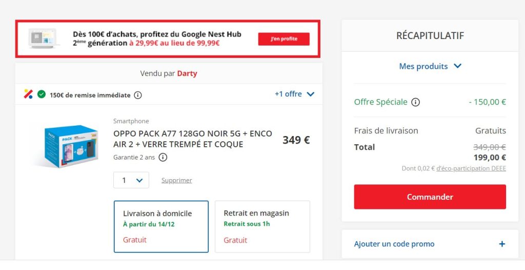 Sur Darty : 150€ de réduction dans le panier pour un coffret contenant le smartphone OPPO A77 128Go + les écouteurs Enco Air + une coque et un verre trempée