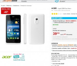 Smartphone pas cher : acer liquid z200 à 40 euros ( dual core )