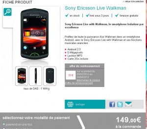 Le smartphone android Live with Walkman de Sony coute plus 200€ en nu ( 212 € avec les fdp à la fnac par exemple, 240 chez ldlc … ) … Mais il ne revient qu’à 119 euros avec un forfait sosh sans engagement ..