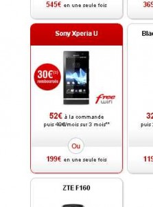 Bonne affaire chez freemobile pour le smartphoen Sony Xperia U .. En effet alors que ce smartphone sous android se vend en nu plutot autour de 240 euros , chez freemobile avec un forfait sans engagement , il est à 199 euros ..