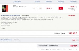 Un autre bon prix pour un smartphone chez carrefouronline … Avec le wiko rainbow rainbow que l’on peut acheter pour 119 euro … Telephone quad core , 5 pouces qui se vend un peu partout entre 145 – 150 euros (149 à la fnac par exemple, 145 chez rdc …)
