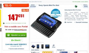 Smartphone Xperia Mini Pro à moins de 150 euros livraison incluse en relais
