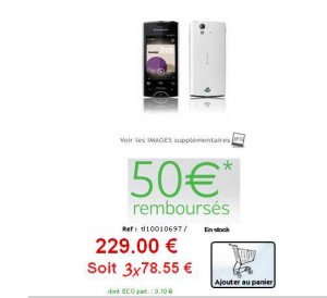 A noter qu’on peut l’obtenir egalement à moins de 150€ en formule à carte chez virgin mobile, mais il n’est pas sur à 100% qu’il sera non simlocké .. (voir l’article Smartphone Xperia Ray qui revient à 149 euros en formule à carte prépayée .. non simlocké à priori )
