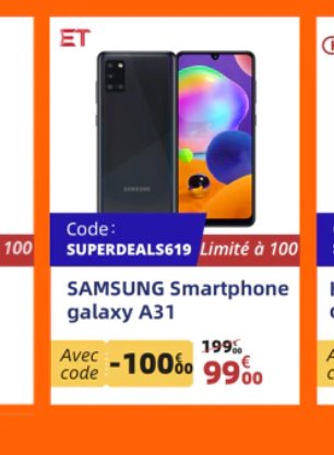 Le smartphone SAMSUNG Galaxy A31 6go-128go en vente flash à 99€ ( au lieu de 200) le 1er avril