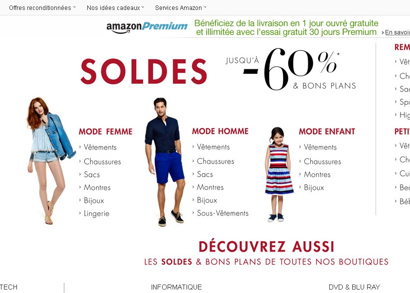 Home » Beauté - Mode - Santé » Soldes amazon .. vetements high tech jouets Soldes amazon .. vetements high tech jouets Bons plans astuces 24 juin 2015 Beauté - Mode - Santé, High Tech SaveSavedRemoved 0 Soldes chez amazon , avec des prix réduits sur vetements, chaussures, jouets , high tech .. Il faut donc farfouiller Voir les soldes amazon
