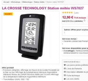 Bon prix pour une station meteo dans les soldes sur pixmania .. 12.9 euros la station lacrosse technologie ws7027…