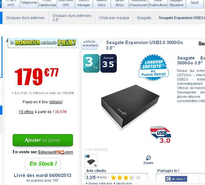 Vous avez besoin d’un gros disque dur externe pour stocker de nombreux fichers en tout genre ? Offre interessante sur amazon pour un disque dur externe 3.5 pouces de 3to .. 113 euros seulement le disque Seagate usb3 de 3to …