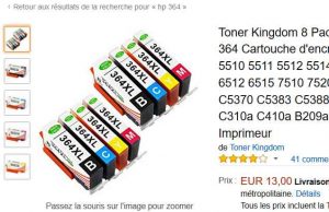 Alors qu’hp nous vend sur la boutique officielle le pack de 4 cartouches 364Xl à 72€ , sur amazon, on peut acheter deux packs compatibles pour seulement 13€…