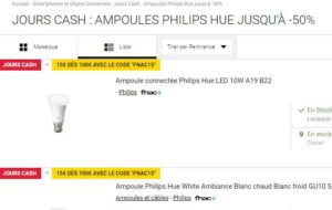 sur le site de la fnac il y a jusqu’à 50% sur des ampoules et des kits Hue … jusqu’au 30 avril