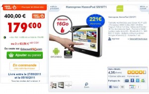 Prix exceptionnel à priori pour la tablette android Hannspree Hannspad sn10t1 sur cdiscount : en effet alors que par exemple elle est vendue 350 euros sur amazon, cdiscount la propose à moitié prix à 179 euros ..