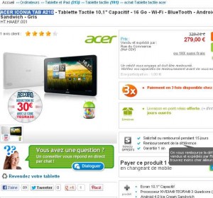 Tablette Acer Iconia Tab A210 quadricore à moins de 250 euros