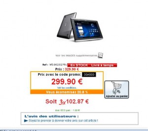 Si vous recherchez une tablette 10 pouces android puissante , il y a une bonne affaire actuellement concernant la tablette ACER ICONIA TAB A 500 que l’on peut obtenir à moins de 300 euros sur 2 sites ..