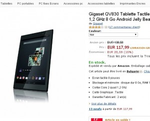 Bon plan sur la tablette gigaset qv830 … En solde sur amazon à 117 euros elle fait l’objet de 40 euros de remboursement … elle revient donc à moins de 80 euros ..