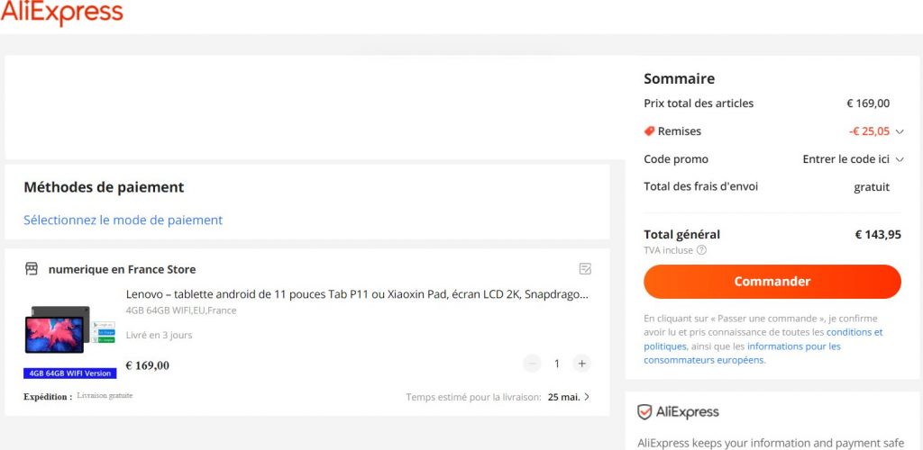 Affichée à 159€ pour la version 4/64 et 189€ pour la version 6/128go par un vendeur , il y a un coupon vendeur qui donne 20€ de réduction avec le code promo « FRDETE020 » Au final la LENOVO TAB P11 ne coutera donc que 139€ en 4/64 et 169€ pour la version 6/128go
