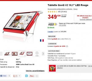 Cliquez ici pour voir la tablette culinaire qooq version 2 sur le site de la fnac (l’offre de 10€ par tranche de 50 euros est valable jusqu’au 5 mars)