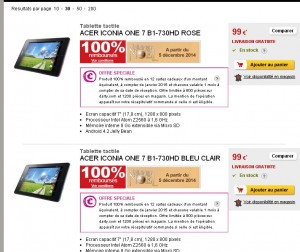 Tablette tactile Acer 7 pouces … 100 pourcent remboursée … toujours dispo