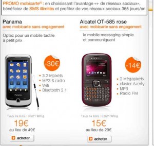 Il y a aussi sinon, le PANAMA à 19 euros au lieu de 49 , qui est un mobile tactile avec appareil photos de 3 millions de pixel , mais dont le plus grand interet est qu’il est wifi .. et qu’il permet donc de consulter ses mails ou d’aller sur internet dès que l’on dispose d’un point d’acces ..