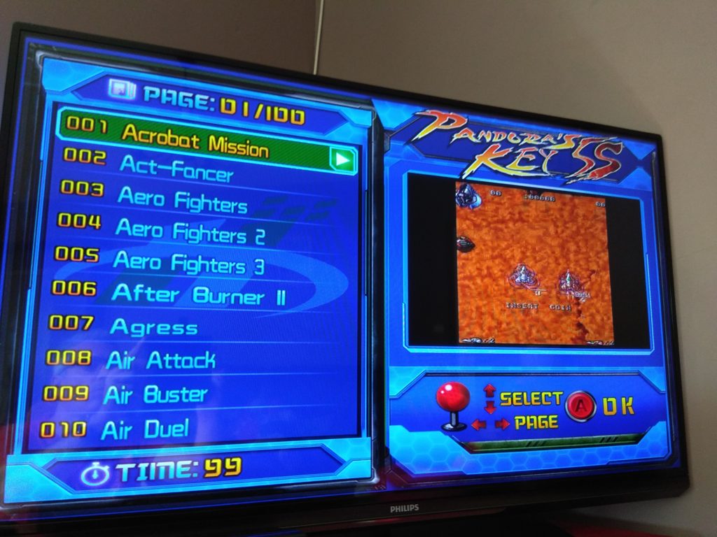 Dans les regrets, peut etre qu’on pourrait dire que la pandora box est un peu bruyante … et sinon qu’il est aussi parfois assez long d’aller selectionner un jeu parmi les 1000 en faisant defiler les differentes pages