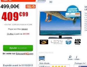 Tv 3d 40 pouces samsung à 410 euros port inclu
