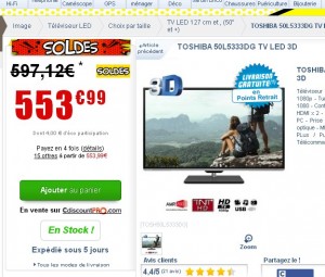 Tv 3d 50 pouces Toshiba qui revient à moins de 455 euros livraison incluse