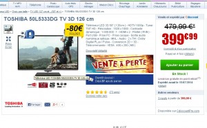 Super prix pour une tv 3d grand écran … Sur cdiscount, en vente flash à moins de 400 euros on a une tv toshiba de 50 pouces …