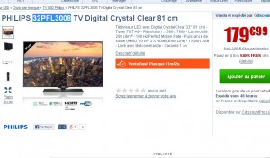 Tv 100hz modele 32PFL3008 que l’on peut voir autour de 230 – 240 euros ailleurs … Tv avec deux prises hdmi , un port usb