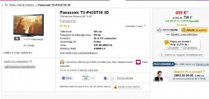 Tv plasma 3d connectée Panasonic 42 pouces à moins de 500 euros port inclu