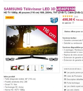 Tv Samsung 46 pouces 3D à moins de 500 euros livraison incluse