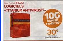 En effet ce jour là, 4500 antivirus titanium antivirus vendus 30 euros font l’objet d’un credit à 100% sur la carte de fidelité du magasin .