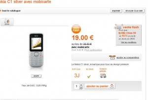 Le nokia C1 en formule mobicarte est en effet à 19 euros port inclu ..