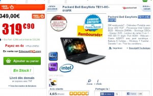 Mais pour tout achat de cet ordinateur d’ici le 1er novembre 2012 , cdiscount rembourse 30 euros en différé .. le prix de revient final est donc de moins de 290 euros ..