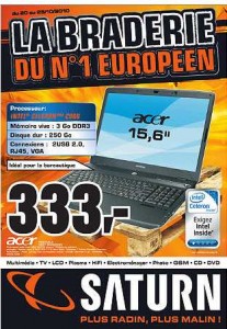 Il semble que l’offre actuellement presente du 20 au 25 octobre dans les magasins saturn soit difficilement battable .