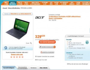 Maj du 20/03/2011 : cet ordinateur n’est plus disponible mais actuellemet une offre encore plus interessante est presente chez cdiscount : cliquez ici pour voir l’article correspondant