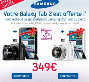 Une galaxy tab 2 offerte pour l’achat d’un appareil photo Samsung EX2F à 350 euros