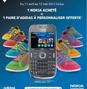Une paire de basket adidas fluid trainer personnalisée offerte pour l’achat d’un nokia asha 201 ou 302