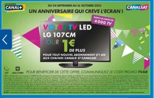 Une tv à un euro pour un abonnement à canalplus canalsat d’ici le 16 octobre 2013