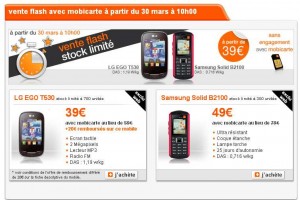 Vente flash orange du 30 mars : mobile LG EGO T530 qui revient à 19 euros, Samsung B2100 à 49 euros