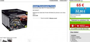 Pour cela bonne affaire sur sur le site auchan.fr qui propose le pack volant Ferrari 458 la marque Thrustmaster à 65 euros mais avec 50% de remboursé sur la carte de fidelité gratuite du magasin … On recupere donc 32.50 sur celle ci , ce qui correspond donc egalement au prix de revient final de ce pack ..