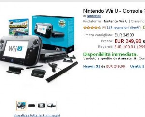 Vous désirez une console wii u ? Alors qu’en France le pack Wii u 32go + le jeu nintendo land semble se vendre entre 318 et 350 euros (318 à la fnac ), sur amazon italie encore une fois , on peut l’obtenir pour bien moins cher ..