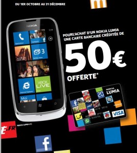 Il est donc en effet vendu 197 .01 sur cdiscount (contre autour de 220 – 250 chez pas mal de vendeurs ) et pour un achat d’ici fin decembre, nokia rembourse 50 euros sous forme de carte bancaire prépayée créditée de 50 euros donc ..