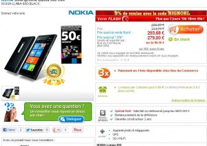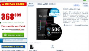 Sur cdiscount, le lumia900 est à 368 euros avant remboursement .. soit donc 318 euros apres ..