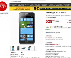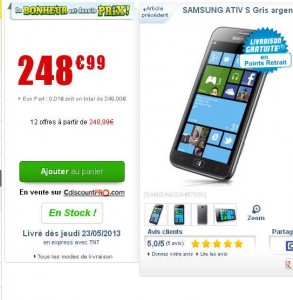 Windowsphone samsung ativ ( 4.8 pouces, dual core 1.5 ghz) à moins de 240 euros .. tjours dispo