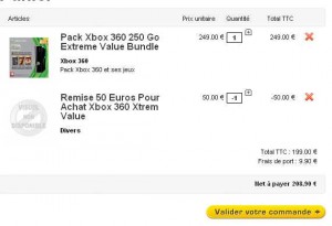 Le pack est en fait vendu 249 euros mais fait l’objet d’une remise immediate de 50 euros quand on le met dans le panier ..