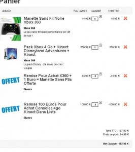 (A noter que cela met des prix de bases elevés (265 euros le pack ) mais apres avoir ajouté dans le panier, cela applique un remise de 100€ sur la console )